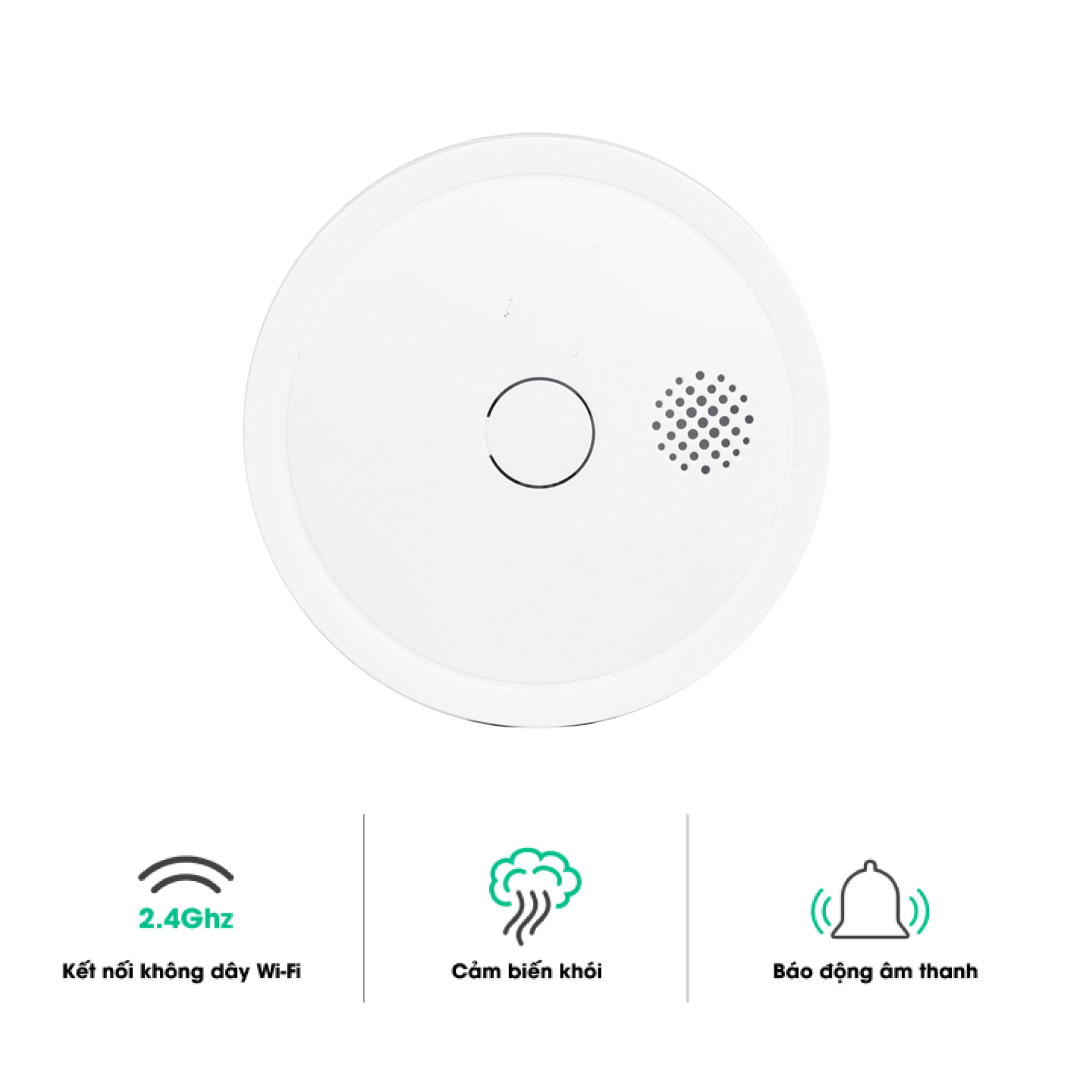 1/ Bảo vệ người và tài sản: Cảm biến khói sẽ ngay lập tức phát âm thanh cảnh báo ≥85dB đồng thời gửi cảnh báo về smartphone và kích hoạt kịch bản chữa cháy giảm thiểu thiệt hại về người và tài sản ngay khi phát hiện sự xuất hiện của khói trong không khí.